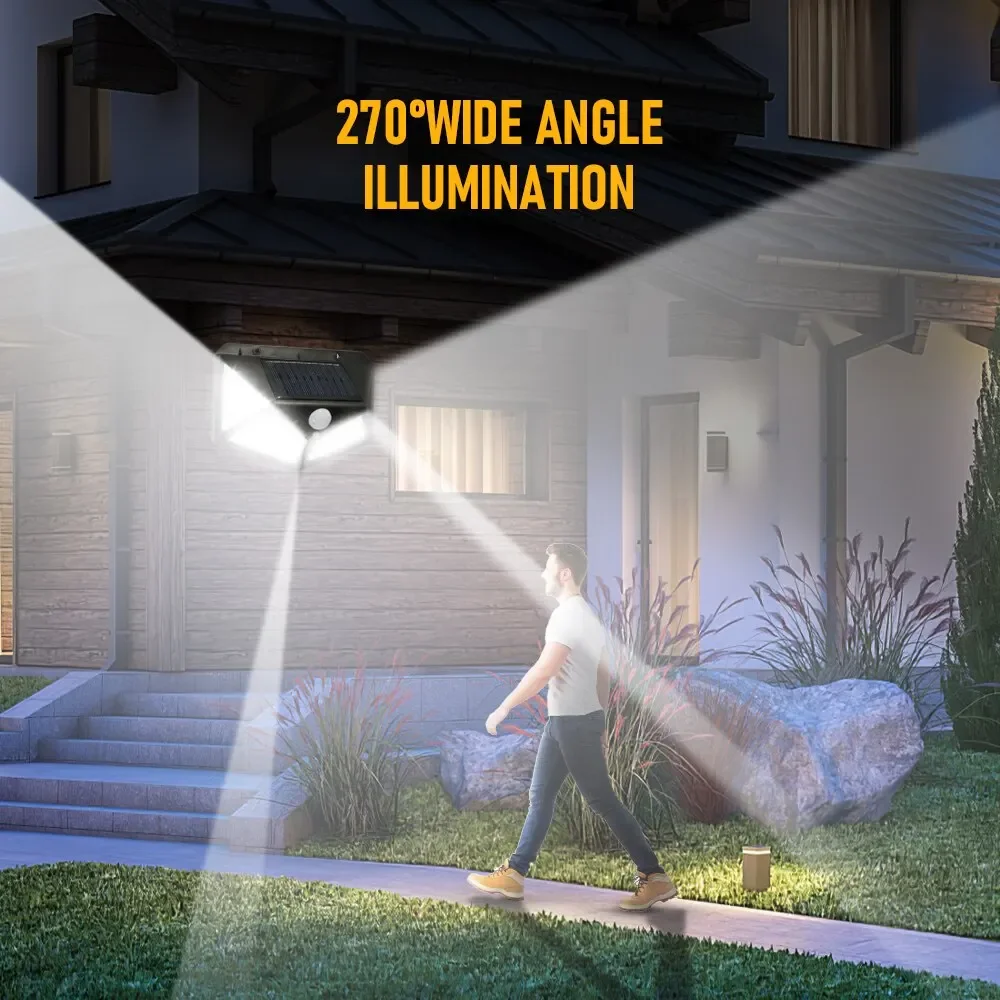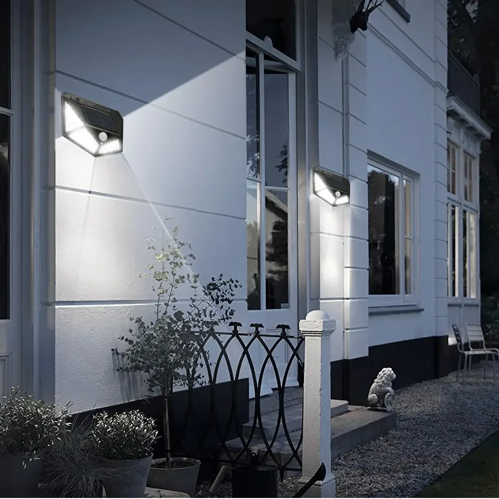 A luz do sensor de movimento solar de 100 LEDs é ótima para paredes, pátios, jardins, varandas, gramados, caminhos, calçadas, calhas, etc.
