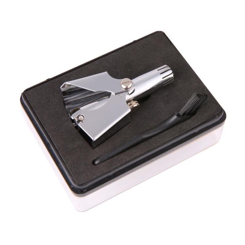 - Passo 1: Insira o aparador ligeiramente na narina segurando a ferramenta com o polegar e o indicador. Coloque as cabeças de corte a aproximadamente 1/5 polegadas em sua narina. (Certifique-se de limpar a área com água morna antes de usar.)