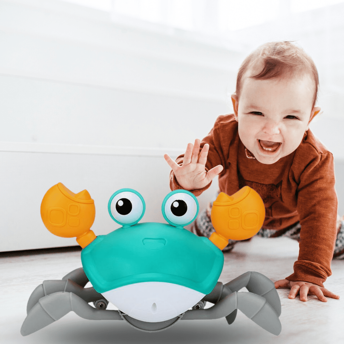 Sua forma movimentação e sua imagem engraçada e cores agradáveis, atraem a atenção e o interesse do seu filho em brincar com o caranguejo, diversão garantida, muito gargalhadas, travessuras e muito mais.
