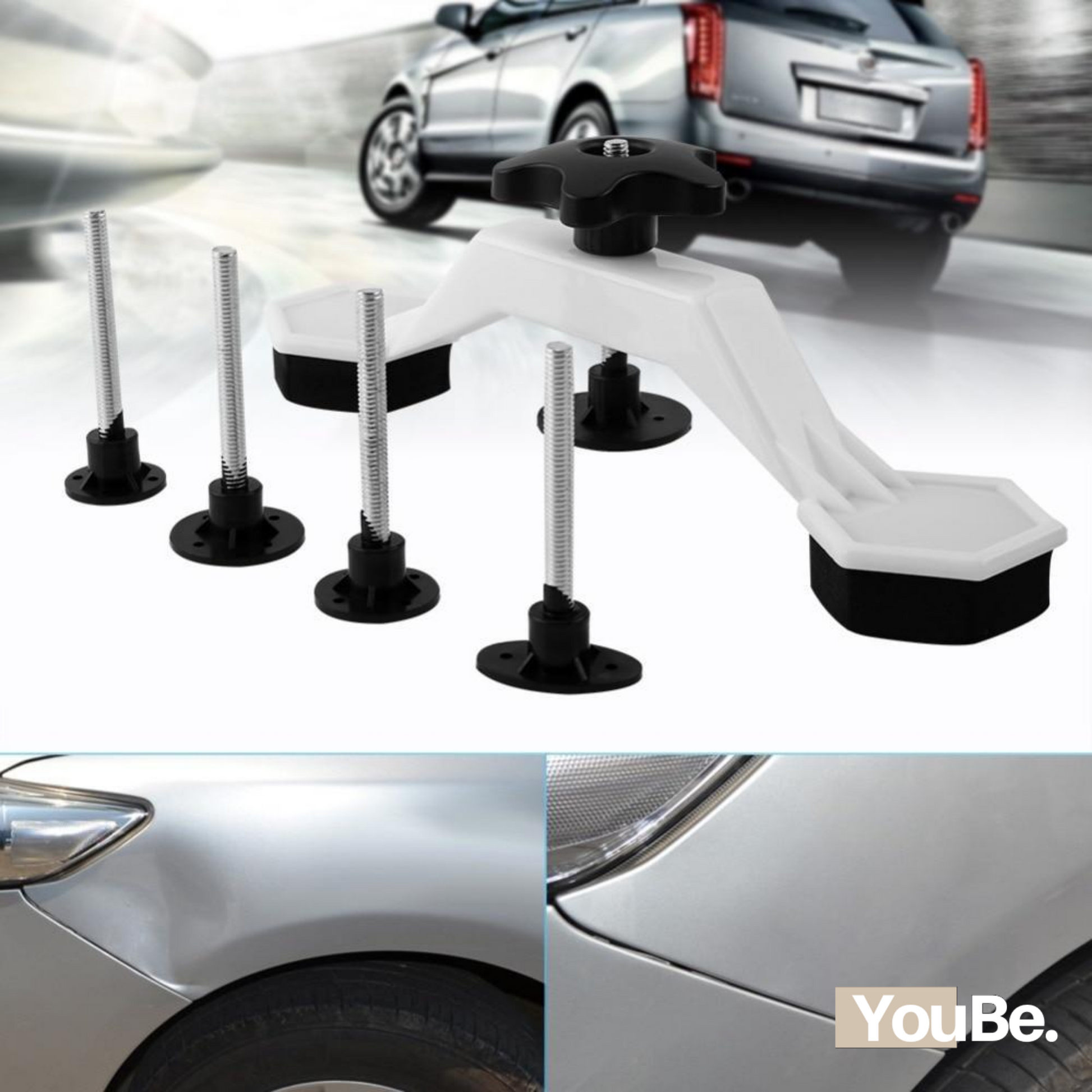 POR QUE ESSA FERRAMENTA É PARA VOCÊ? Rápido e fácil de usar você mesmo; Mesmo sistema usado em oficinas profissionais de funilaria; Perfeito para todos os tipos de amassados, inclusive granizo e amassados na porta; Ideal para teto, capô, porta-malas, paralamas, tanque e motocicletas; Sua lataria se tornará nova instantaneamente; Não danifica a pintura original; Ajustável a cada tipo de amassado, seja qual for o tamanho. Também funciona em geladeiras, máquinas de lavar, motocicletas ou outros eletrodomésticos.
